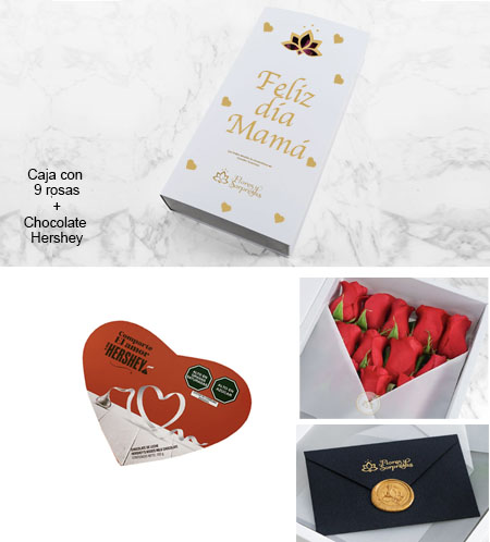 - Caja con 9 Rosas, escoge el color de su preferencia.