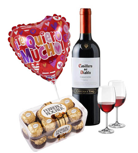 Vino con chocolate Ferro, globo y copas